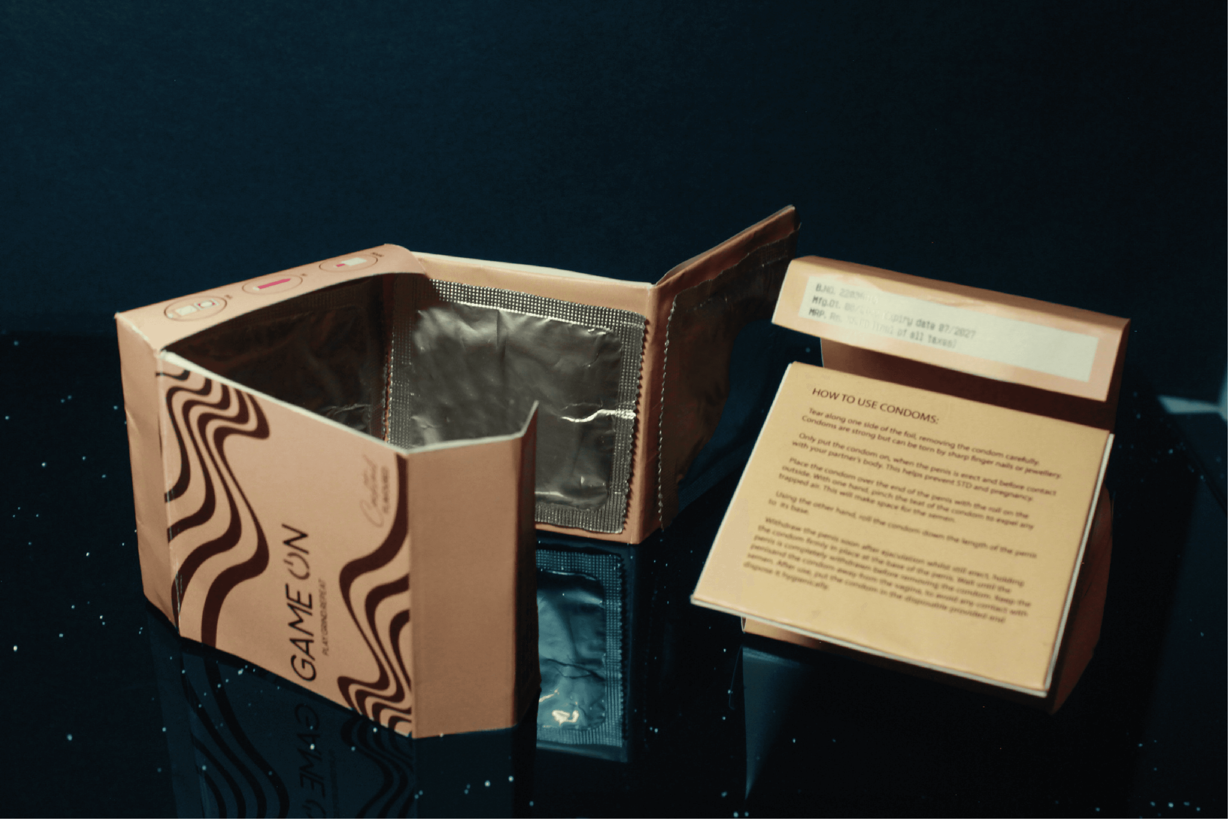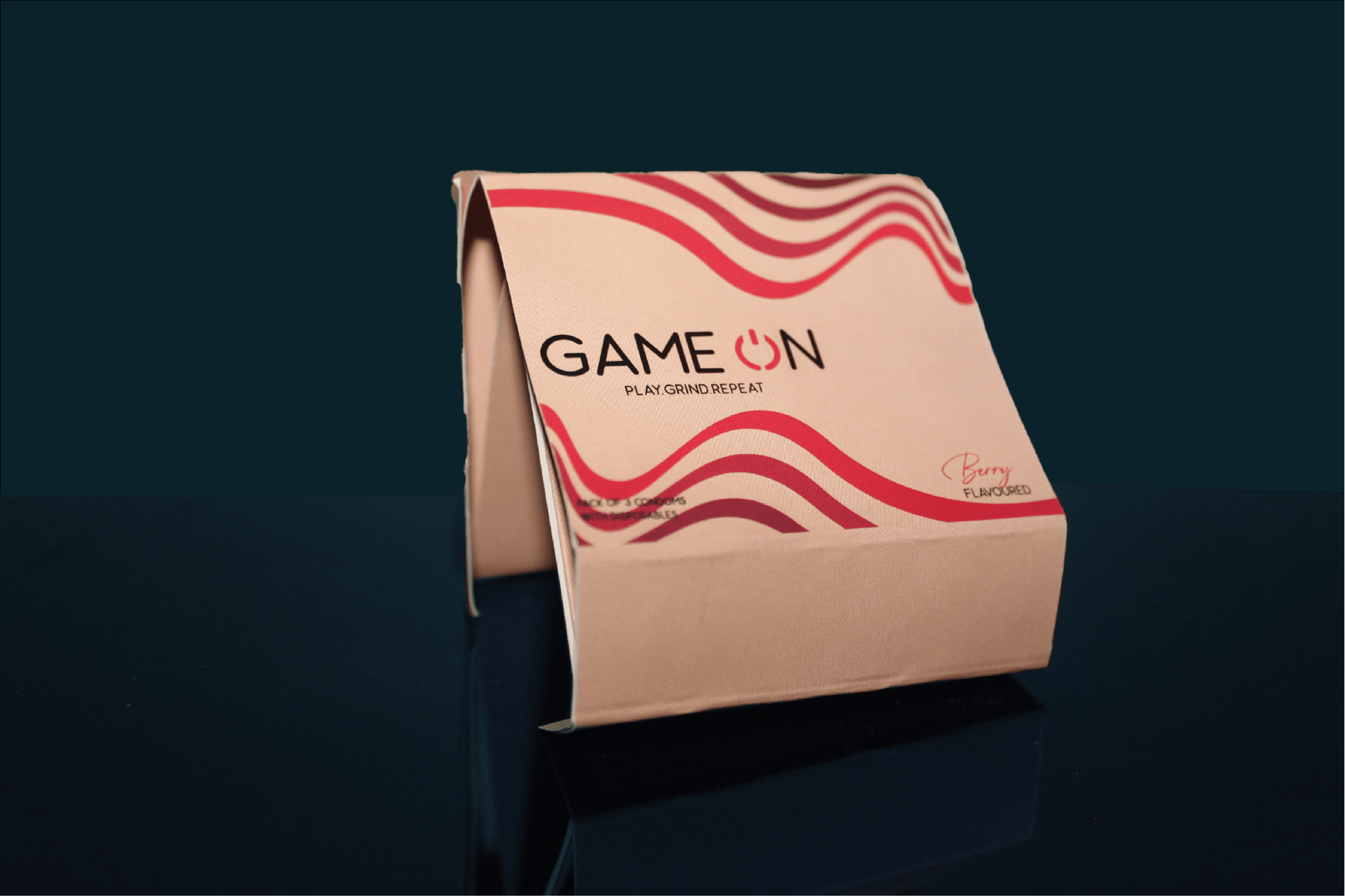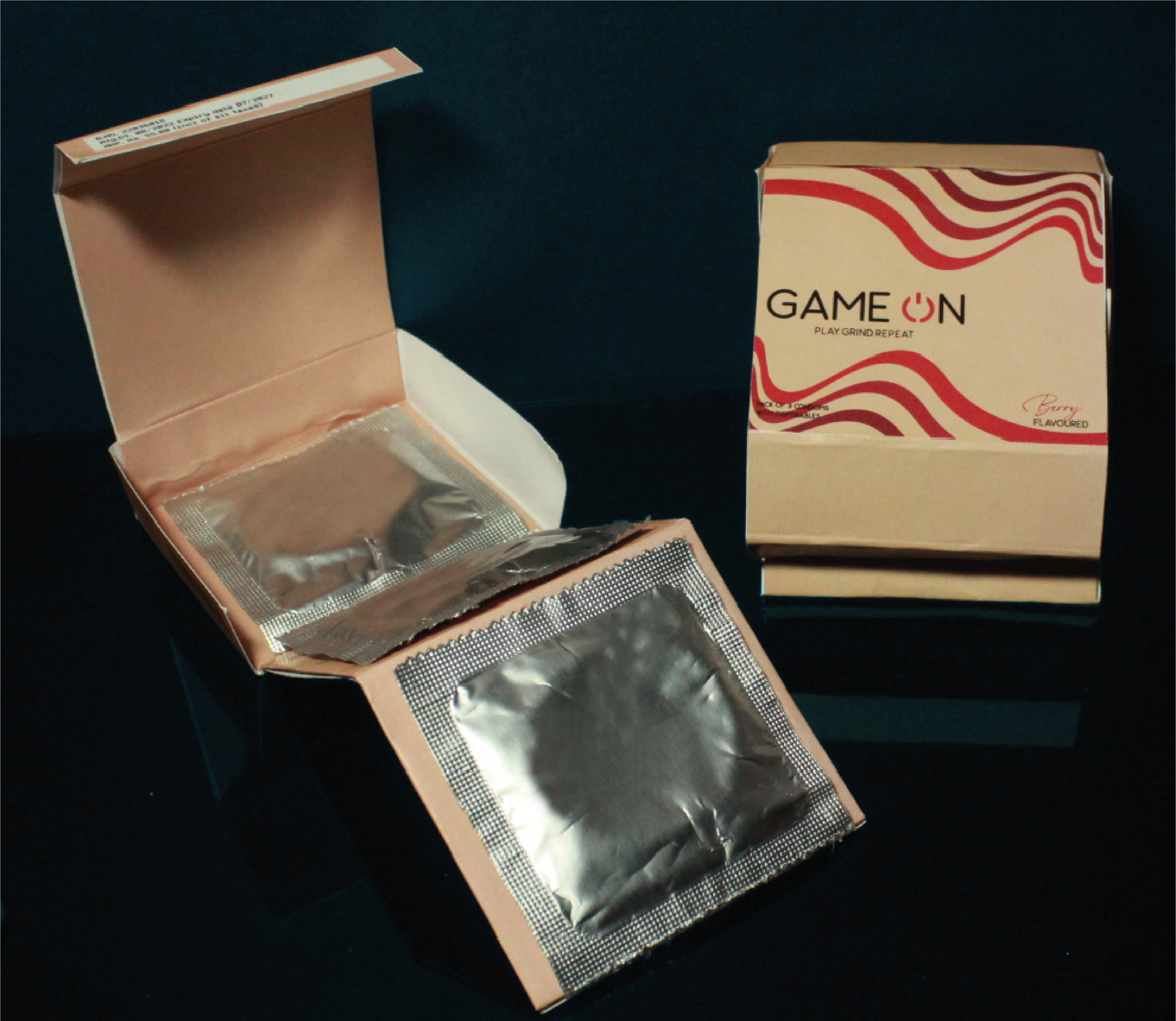 Game On is a brand that manufactures condoms. The uniqueness in this product is it's packaging. It has a disposing feature within the packaging after it's usage. The packaging itself can be converted into disposable packaging.